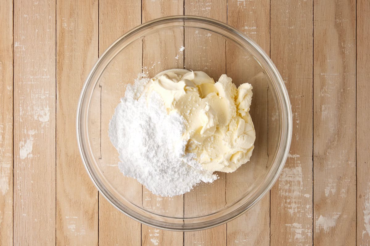 - Step 3: Place the mascarpone cheese and powdered sugar in a medium bowl and mix until creamy.